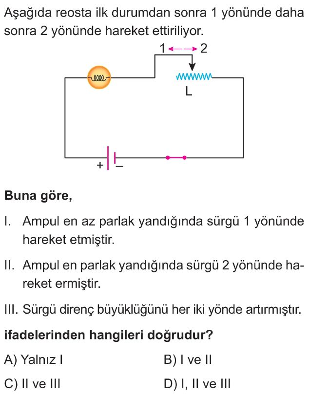 6. Sınıf Elektriksel Direnç ve Bağlı Olduğu Faktörler Test 3