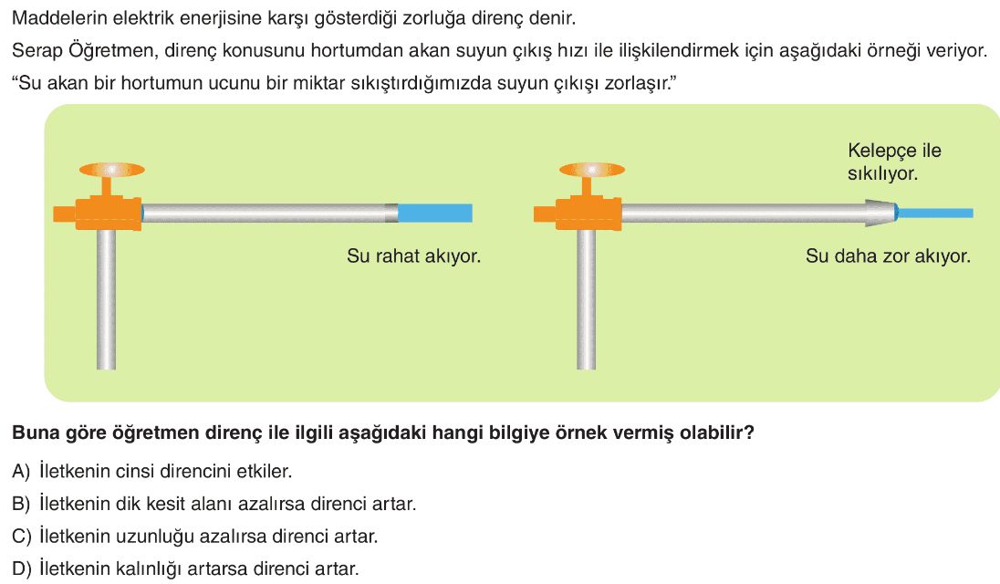 6. Sınıf Elektriksel Direnç ve Bağlı Olduğu Faktörler Test 3