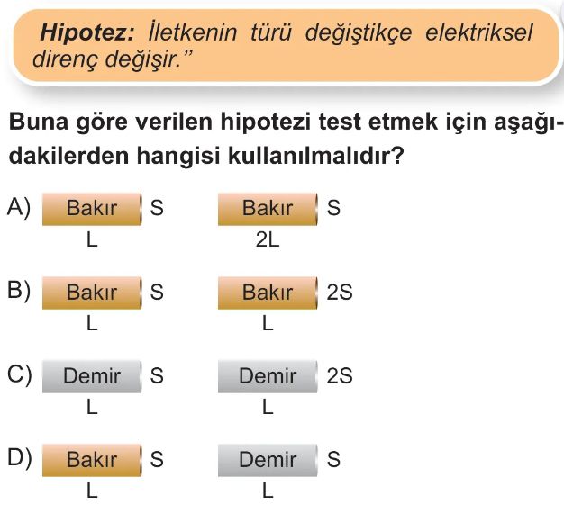 6. Sınıf Elektriksel Direnç ve Bağlı Olduğu Faktörler Test 3