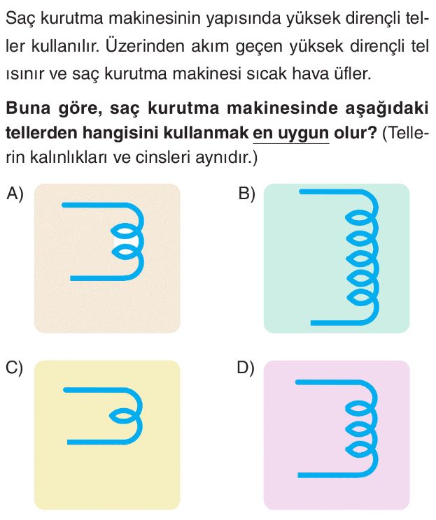 6. Sınıf Elektriksel Direnç ve Bağlı Olduğu Faktörler Test 4