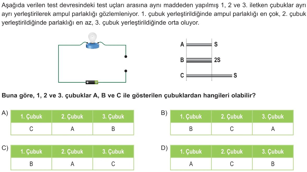 6. Sınıf Elektriksel Direnç ve Bağlı Olduğu Faktörler Test 4