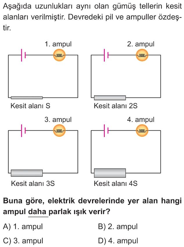 6. Sınıf Elektriksel Direnç ve Bağlı Olduğu Faktörler Test 4