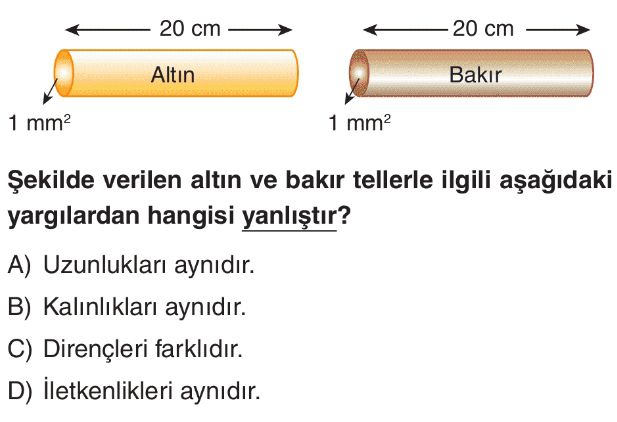 6. Sınıf Elektriksel Direnç ve Bağlı Olduğu Faktörler Test 4