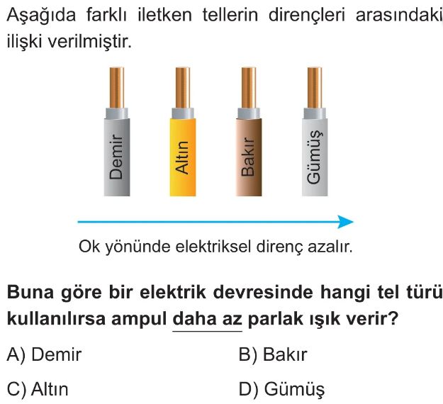 6. Sınıf Elektriksel Direnç ve Bağlı Olduğu Faktörler Test 4