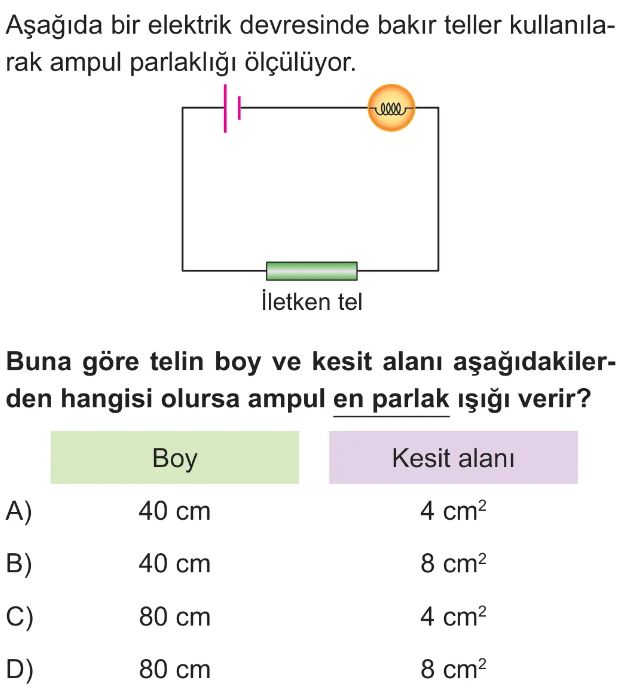6. Sınıf Elektriksel Direnç ve Bağlı Olduğu Faktörler Test 4