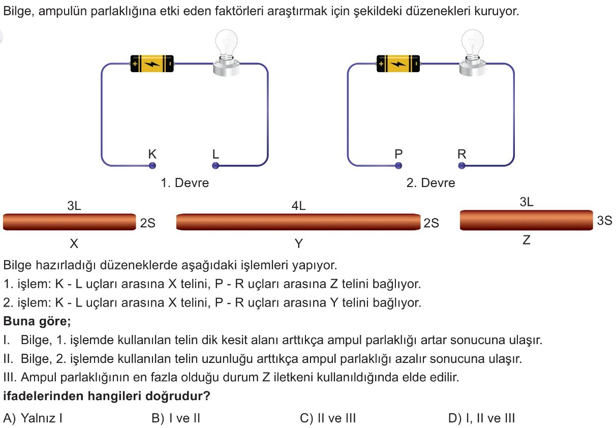 6. Sınıf Elektriksel Direnç ve Bağlı Olduğu Faktörler Test 5