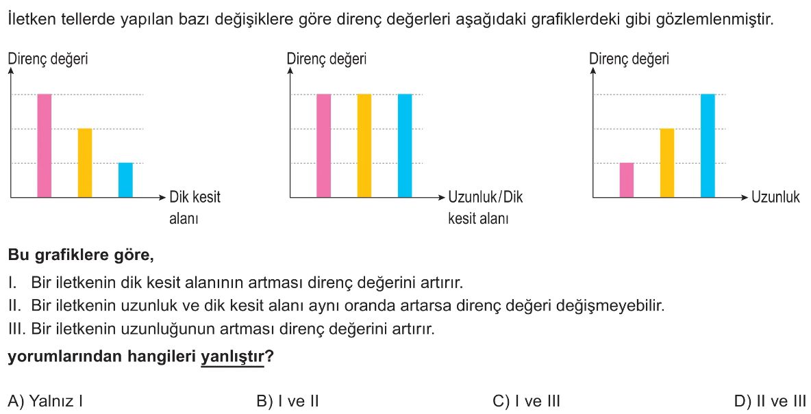 6. Sınıf Elektriksel Direnç ve Bağlı Olduğu Faktörler Test 5