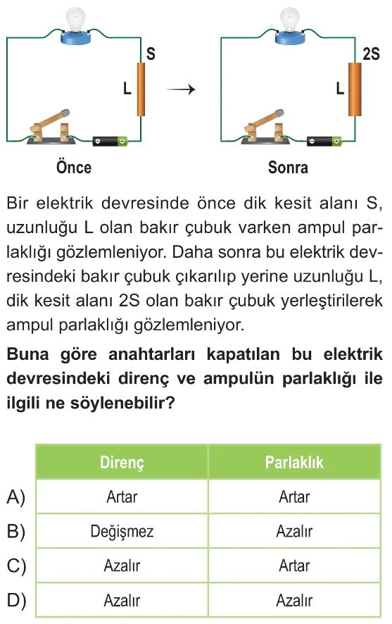 6. Sınıf Elektriksel Direnç ve Bağlı Olduğu Faktörler Test 6