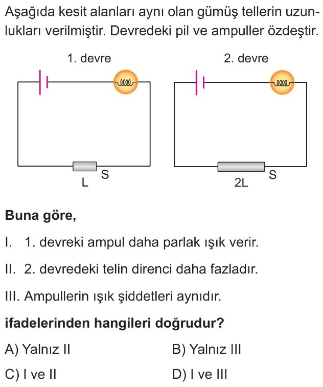 6. Sınıf Elektriksel Direnç ve Bağlı Olduğu Faktörler Test 6