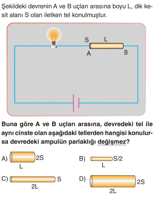 6. Sınıf Elektriksel Direnç ve Bağlı Olduğu Faktörler Test 7