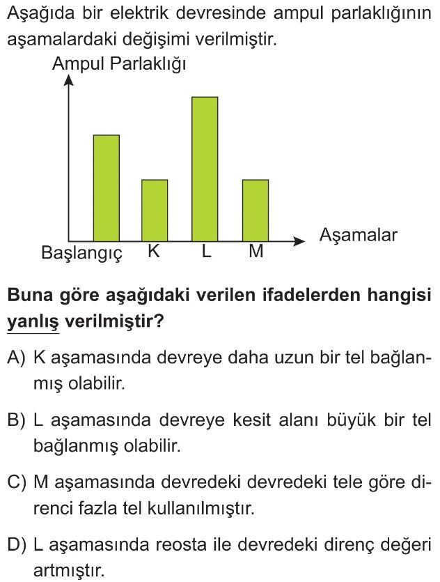 6. Sınıf Elektriksel Direnç ve Bağlı Olduğu Faktörler Test 7