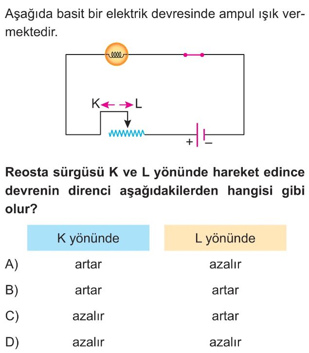 6. Sınıf Elektriksel Direnç ve Bağlı Olduğu Faktörler Test 8