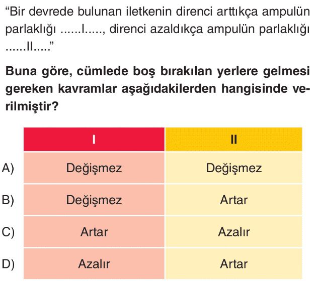 6. Sınıf Elektriksel Direnç ve Bağlı Olduğu Faktörler Test 9