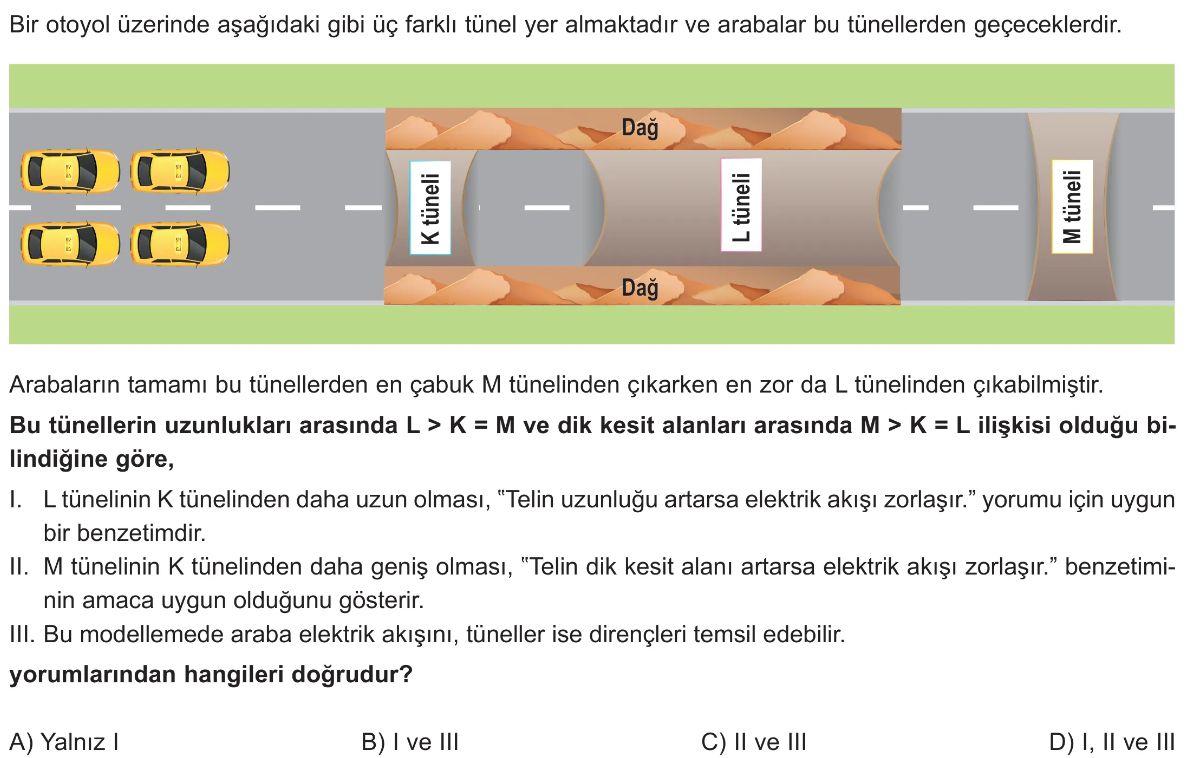 6. Sınıf Elektriğin İletimi ve Direnç Ünite Değerlendirme Test 1