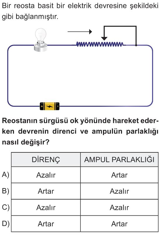 6. Sınıf Elektriğin İletimi ve Direnç Ünite Değerlendirme Test 1