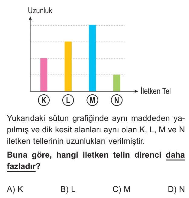 6. Sınıf Elektriğin İletimi ve Direnç Ünite Değerlendirme Test 1