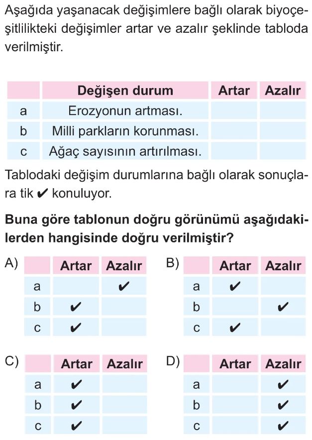 6. Sınıf Biyoçeşitlilik Test 3