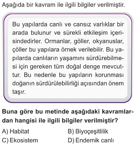 6. Sınıf Biyoçeşitlilik Test 5