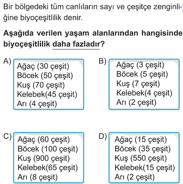 6. Sınıf Biyoçeşitlilik Test 7