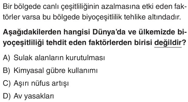 6. Sınıf Biyoçeşitlilik Test 8