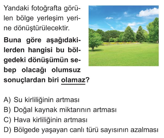 6. Sınıf İnsan ve Çevre Etkileşimi Test 2
