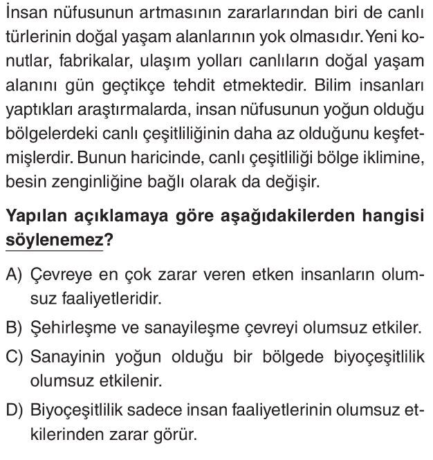 6. Sınıf İnsan ve Çevre Etkileşimi Test 3