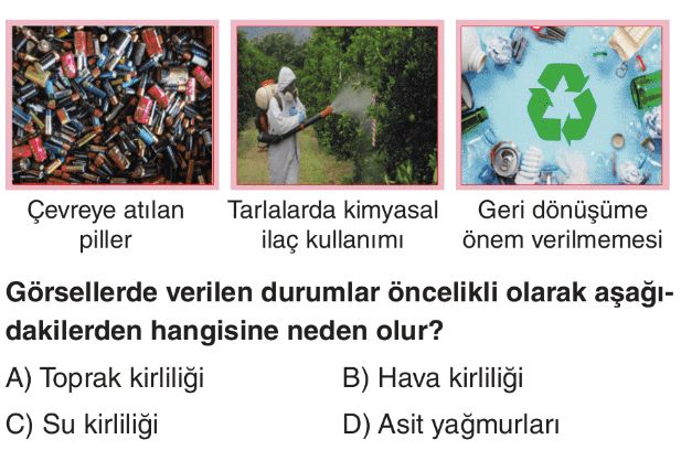 6. Sınıf İnsan ve Çevre Etkileşimi Test 5