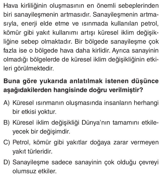 6. Sınıf İnsan ve Çevre Etkileşimi Test 7