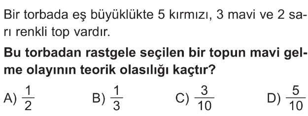 6. Sınıf Bir Olayın Olasılığını Gözleme Dayalı Tahmin Etme Test 1