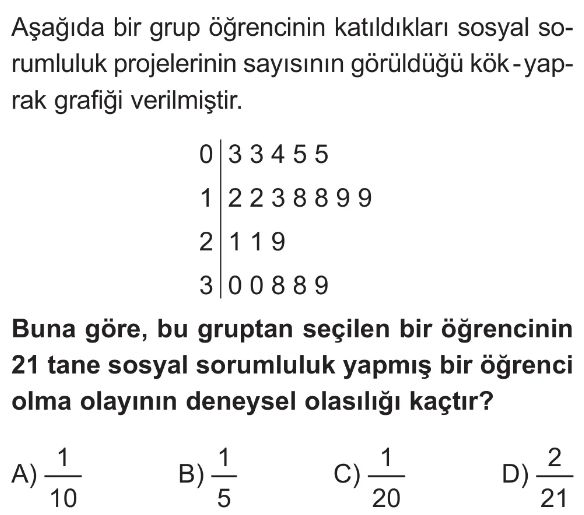 6. Sınıf Bir Olayın Olasılığını Gözleme Dayalı Tahmin Etme Test 1