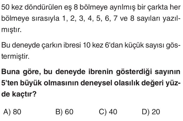 6. Sınıf Bir Olayın Olasılığını Gözleme Dayalı Tahmin Etme Test 1
