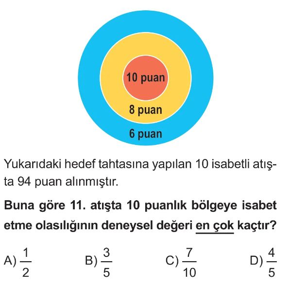 6. Sınıf Bir Olayın Olasılığını Gözleme Dayalı Tahmin Etme Test 1