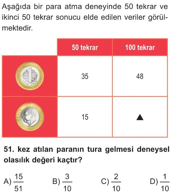 6. Sınıf Bir Olayın Olasılığını Gözleme Dayalı Tahmin Etme Test 1