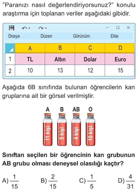 6. Sınıf Bir Olayın Olasılığını Gözleme Dayalı Tahmin Etme Test 2