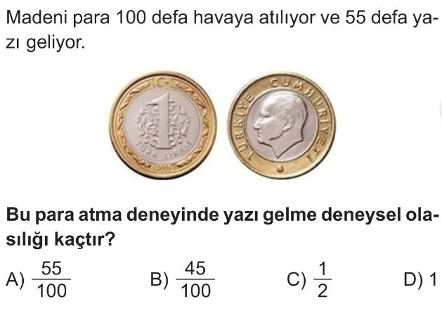 6. Sınıf Bir Olayın Olasılığını Gözleme Dayalı Tahmin Etme Test 2