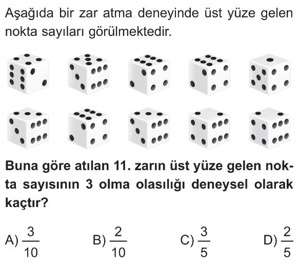 6. Sınıf Bir Olayın Olasılığını Gözleme Dayalı Tahmin Etme Test 2