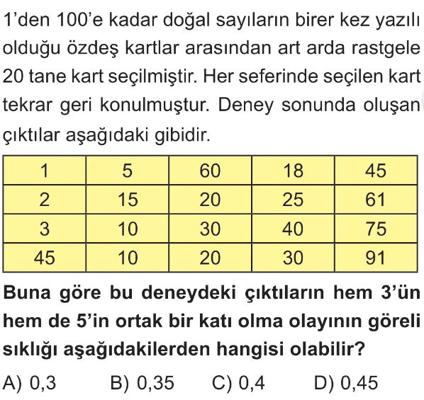 6. Sınıf Bir Olayın Olasılığını Gözleme Dayalı Tahmin Etme Test 2