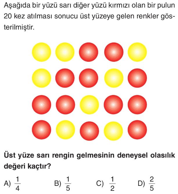 6. Sınıf Bir Olayın Olasılığını Gözleme Dayalı Tahmin Etme Test 3