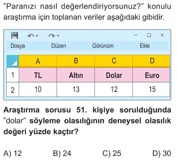 6. Sınıf Bir Olayın Olasılığını Gözleme Dayalı Tahmin Etme Test 3