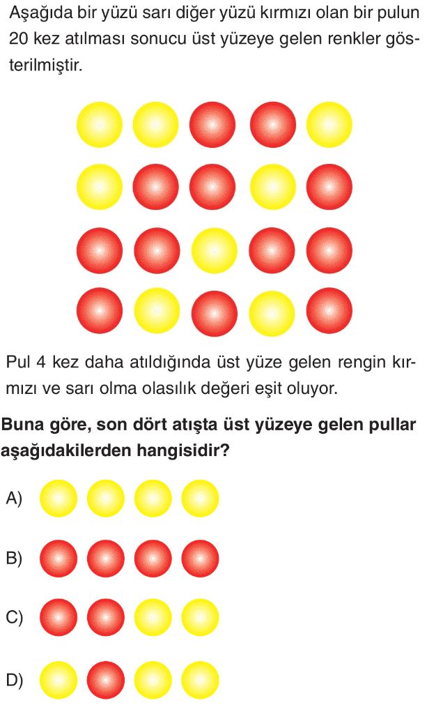 6. Sınıf Bir Olayın Olasılığını Gözleme Dayalı Tahmin Etme Test 4