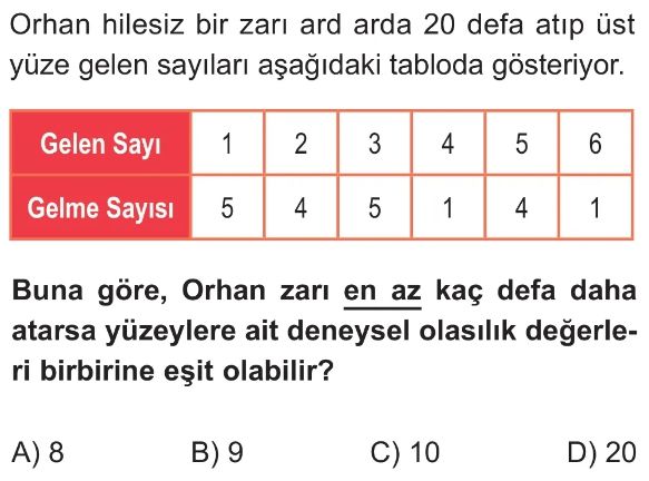 6. Sınıf Bir Olayın Olasılığını Gözleme Dayalı Tahmin Etme Test 4