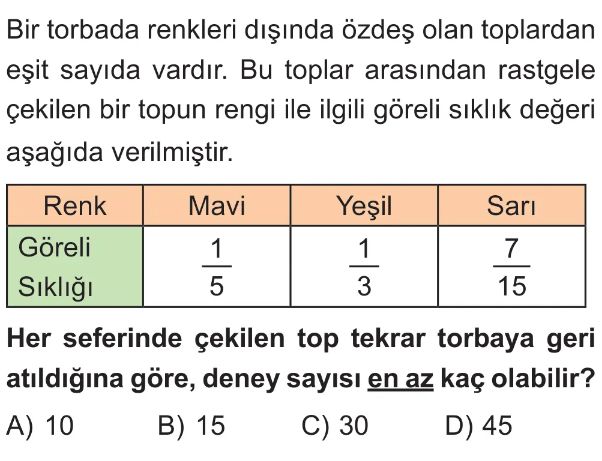 6. Sınıf Bir Olayın Olasılığını Gözleme Dayalı Tahmin Etme Test 5