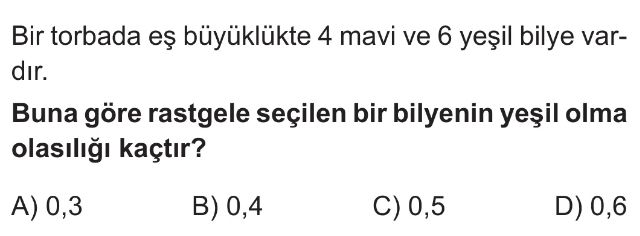 6. Sınıf Bir Olayın Olasılığını Gözleme Dayalı Tahmin Etme Test 5
