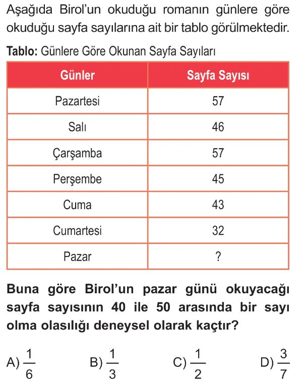 6. Sınıf Bir Olayın Olasılığını Gözleme Dayalı Tahmin Etme Test 5
