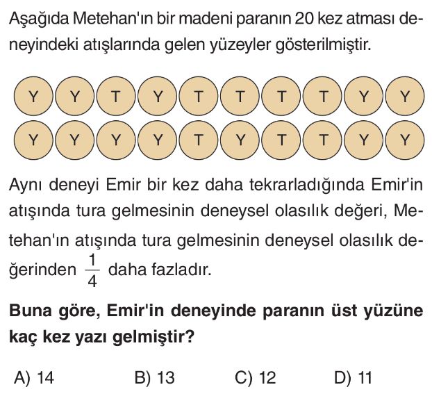 6. Sınıf Bir Olayın Olasılığını Gözleme Dayalı Tahmin Etme Test 5