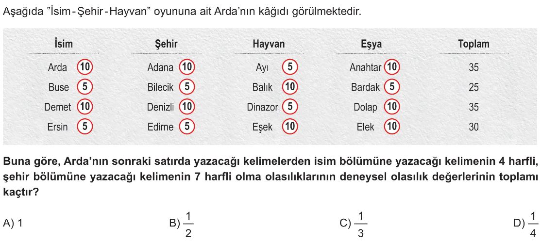 6. Sınıf Bir Olayın Olasılığını Gözleme Dayalı Tahmin Etme Test 5