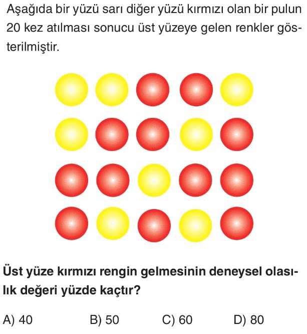 6. Sınıf Bir Olayın Olasılığını Gözleme Dayalı Tahmin Etme Test 6
