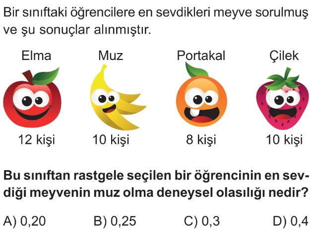 6. Sınıf Bir Olayın Olasılığını Gözleme Dayalı Tahmin Etme Test 6