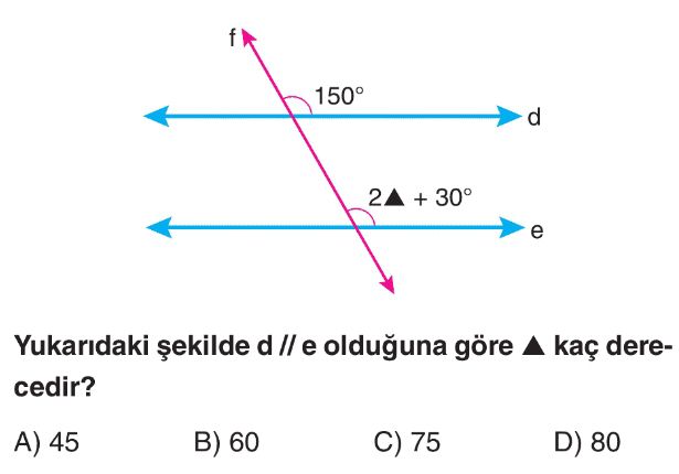 6. Sınıf İki Paralel Doğru Ve Bir Kesenle - İki Kesenle Oluşturulan Açılar Test 4