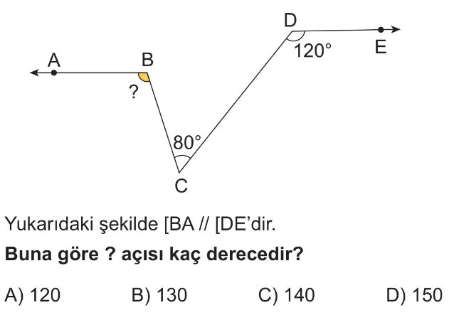 6. Sınıf İki Paralel Doğru Ve Bir Kesenle - İki Kesenle Oluşturulan Açılar Test 5
